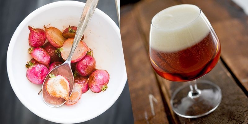 When people think about preparing radishes, the conventional thought process is that you’d dice it raw and throw it in a salad, garnish a dish for texture and a spicy zing, or pickle it for an acidic punch. Braising radishes, on the other hand, brings out an earthier and less bitter version of the root vegetable. Try pairing this side dish with a Belgian Flanders red ale. The complexity of flavors in the Flanders, particularly the higher-than-usual acidity and sweetness, helps bring out those underlying bitter and spicy flavors in radishes that brought you to choose them in the first place.