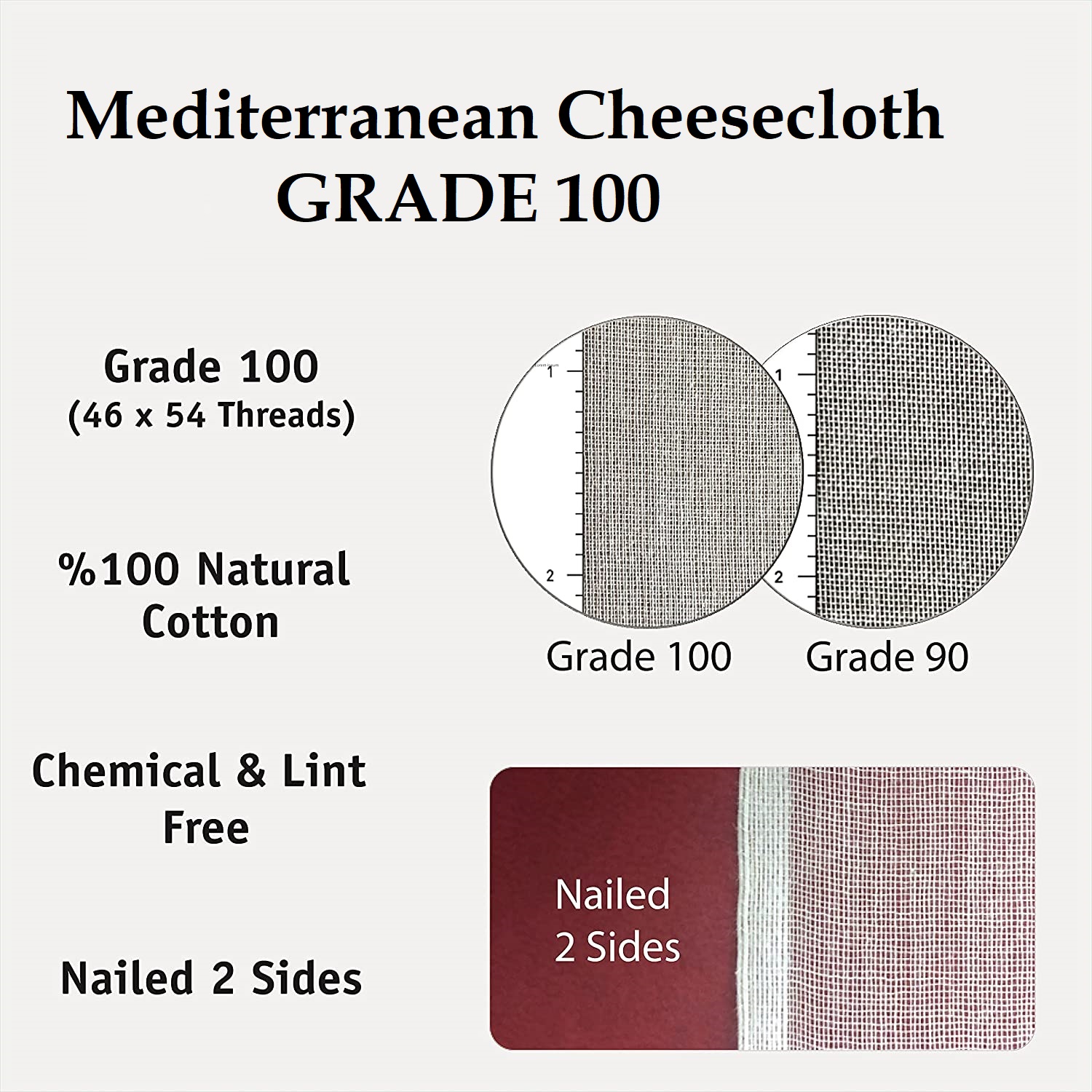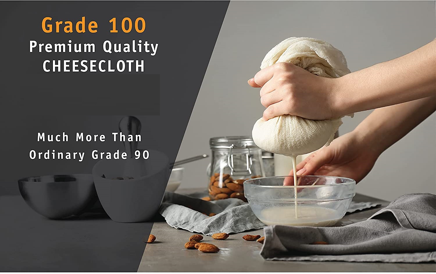 Here’s one square yard 36×36 of extra fine grade 100 unbleached chemical-free Mediterranean cotton muslin cheesecloth. Finer than the cheesecloth we usually work with. Excellent for lining a funnel for beer and wine or making sachets, nut milk, and cheeses. It can also be used for straining milk, tea, jelly, broth, juicing, bean sprouting, spices, soap making, basting poultry, canning, winemaking, cheese, yogurt, kombucha, tofu, and crafts. Works well as a steam cloth in cooking food. Graded 100 is very fine and we think the thread count is about 46×54 threads per inch. It is very high quality and dense, with tight regular lines as opposed to Grade 90 which has somewhat irregular lines. Has a nice cream finish which will look good on top of jelly jars and other food gifts. Can be rinsed, boiled, and reused.