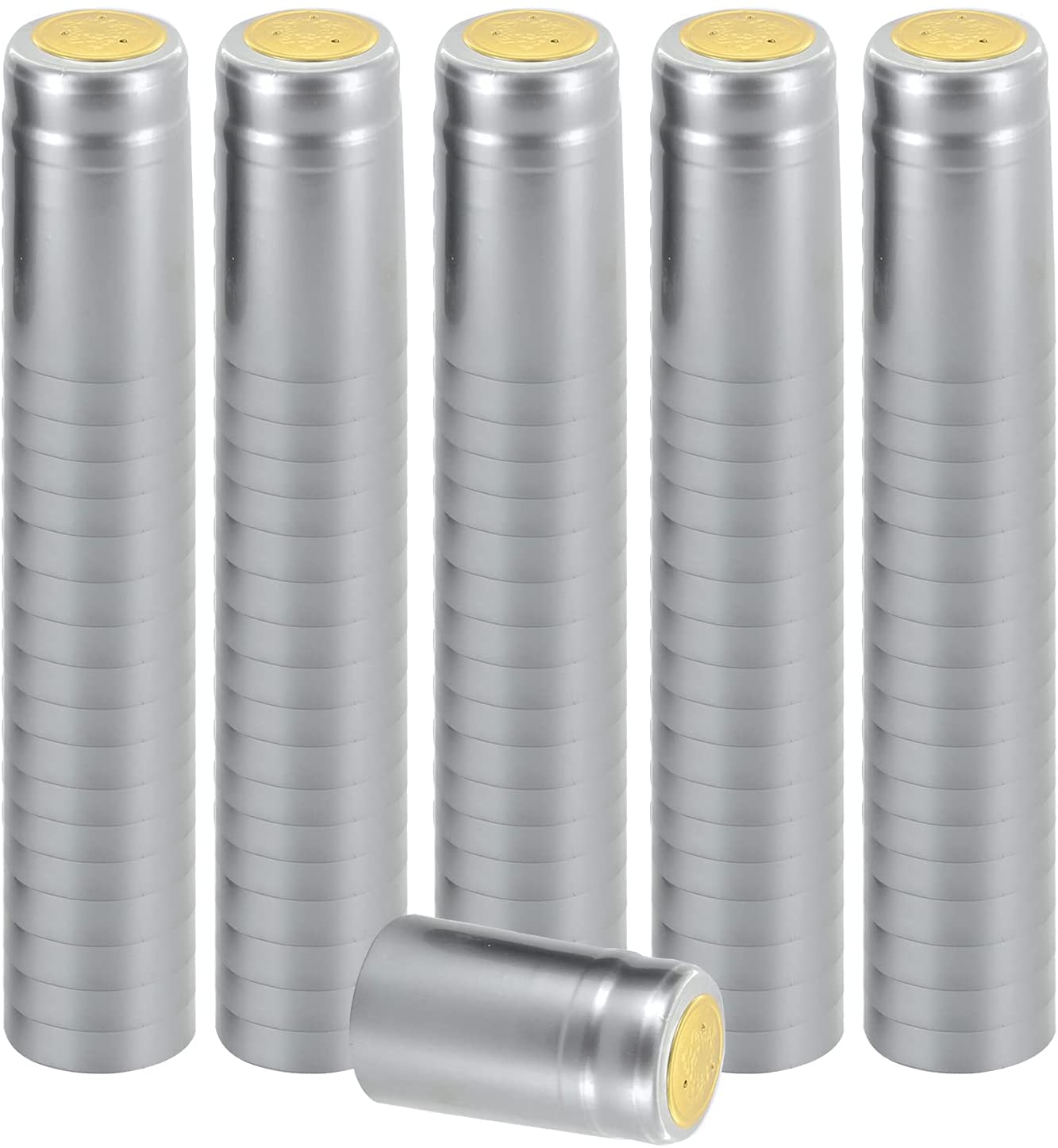 100 Pack SILVER With Gold Top SHRINK CAPSULES PVC Caps for Wine Bottles
