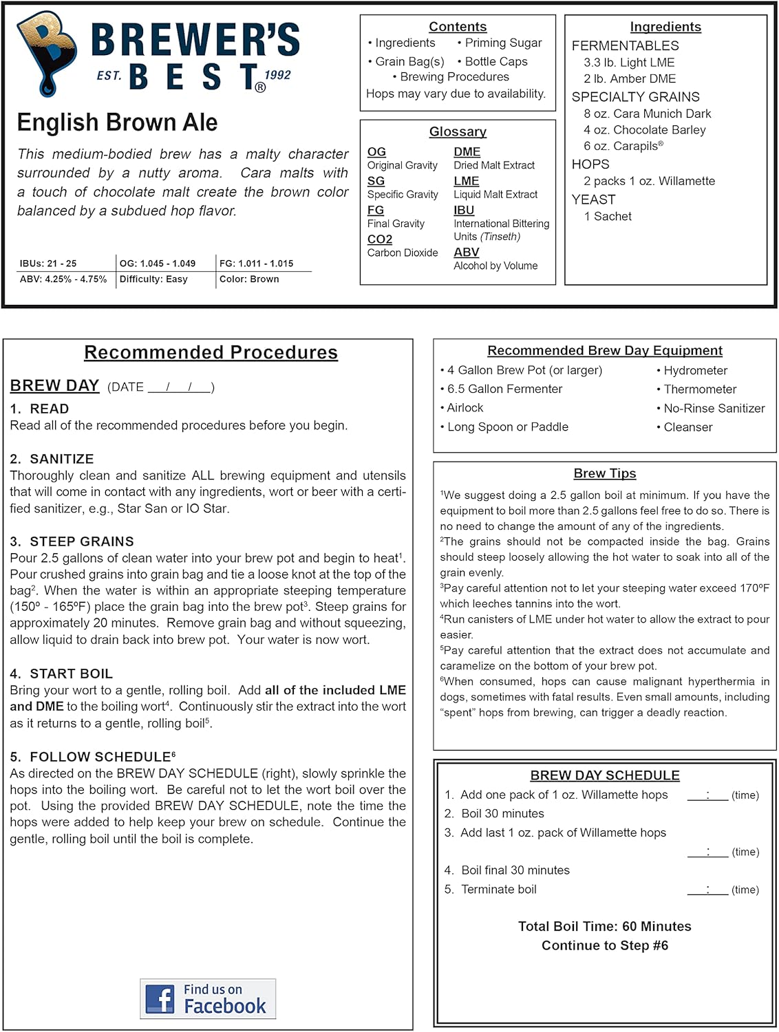 THE BREWER'S BEST® STORY: The freshest ingredients, true-to-style recipes, conveniently packaged at an affordable price - that’s the Brewer’s Best® story. We are the nation’s most widely distributed brand of kits and equipment for today’s home craft brewer. Our story began over 25 years ago when the home brewing industry was in its early stages. Today, we rely on that experience and know-how to create more than 50 varieties of craft beer ingredient kits offered through our Classic, Premium, Limited Release, Seasonal and One Gallon lines, and tasty varieties of craft cider through our Cider House Select® line.