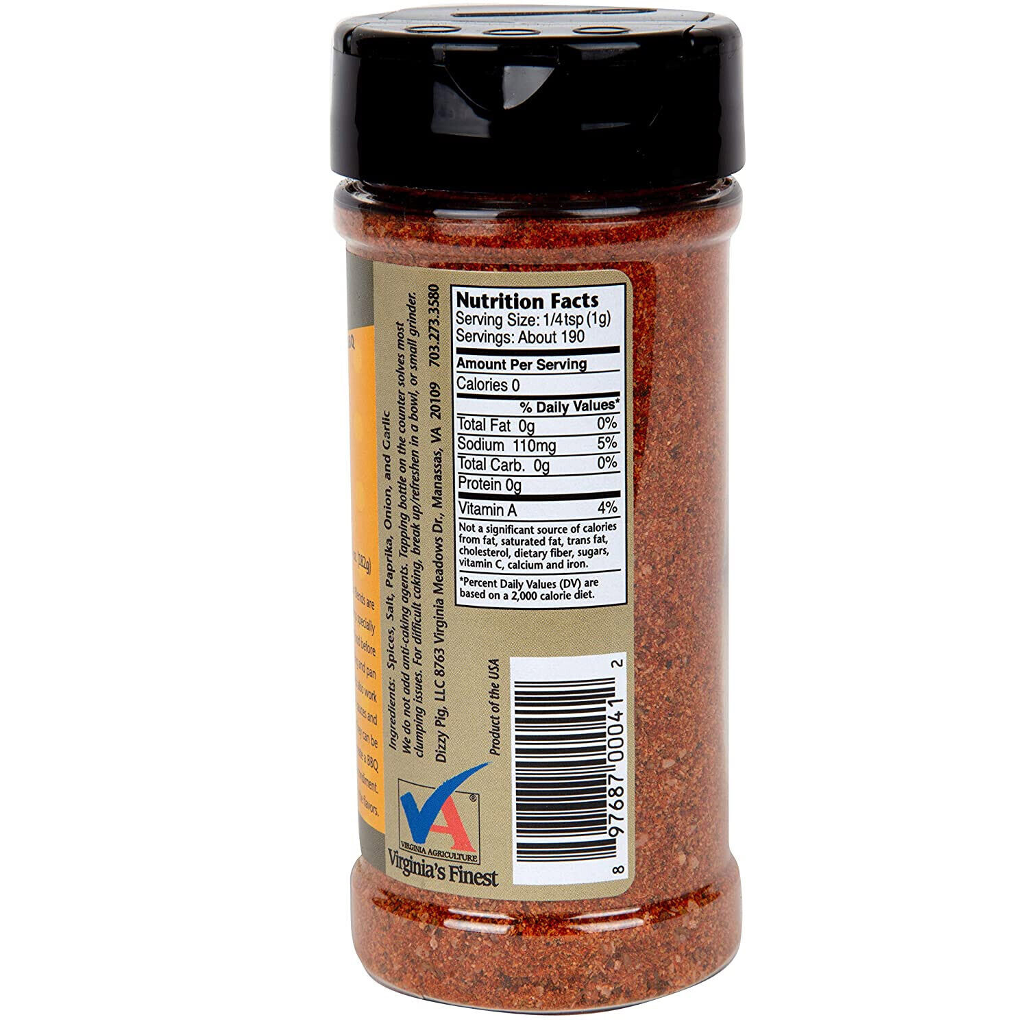 Dizzy Pig’s Fajita-ish Fusion Blend seasoning spice and Barbecue rub ingredients include: cumin, chiles, spices, salt, paprika, onion, garlic