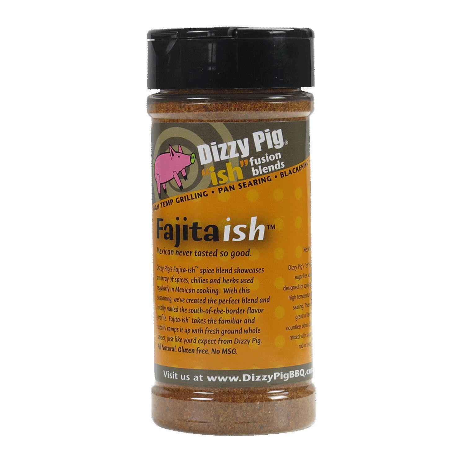 Dizzy Pig’s Fajita-ish spice blend showcases an array of spices, chilies and herbs used regularly in Mexican cooking. With this seasoning, we’ve created the perfect blend and totally nailed the south of the border flavor profile. Whether you are searing a skirt or flank steak, making a pot of chili or beans, or just need to season a taco salad, Fajita-ish takes the familiar and totally ramps it up with fresh ground whole spices, just like you’d expect from Dizzy Pig. Dizzy Pig’s ish Fusion Blends are designed for grilling, searing, pan sauces and countless other dishes. They can be mixed with sugar to create a BBQ rub or used as a condiment. All Dizzy Pig products are made with unprocessed, all-natural ingredients and are allergy friendly! From barbecue to burritos, Dizzy Pig’s Fajita-ish Fusion Blend Mexican seasoning has the flavors that will make you want to dust off your sombrero!