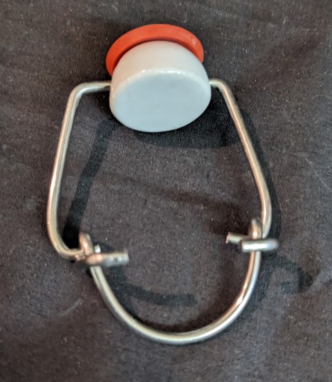 Although technically these are called flip-top, swing-top, or lightning toggles, everyone knows them as GROLSCH CAPS.  This is a pack of 6 replacement swing tops for Grolsch, EZ Cap, Beugel and other brand flipper bottles with the ear hole 1″ below the lip.  Bail and brace design works well for pressurized bubbly carbonated beverages like beer, soda, and shrub.  These have rust-resistant galvanized steel wire bails, white nylon stoppers, and a red rubber gasket pretty much as originally designed by Charles de Quillfeldt in 1875.  Spare gaskets are available, check my other items.  Now shipping the superior Made in Canada version with heavier wire.