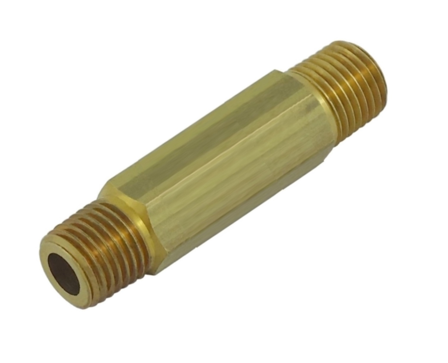 - High quality solid brass, threaded 1/4″ MPT x 1/4″ MPT 1/4″ NPT CO2 hardware. About 3″ long, hex portion about 2″ long.