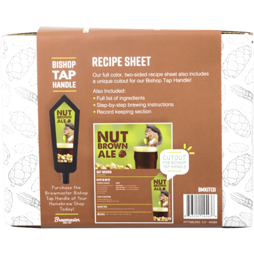 - Includes instructions, Bishop tap handle insert, liquid malt extract (LME), Steeping Bag, milled steeping grains, hops, and dry yeast.