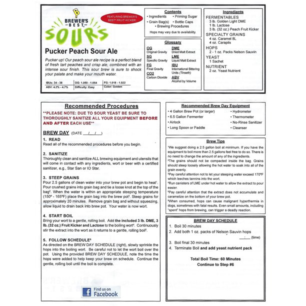 PUCKER PEACH SOUR ALE Premium Ingredient Package from Brewer’s Best Beer Kits LD Carlson 1082
