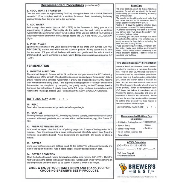 THE BREWER'S BEST® STORY:  The freshest ingredients, true-to-style recipes, conveniently packaged at an affordable price - that’s the Brewer’s Best® story. We are the nation’s most widely distributed brand of kits and equipment for today’s home craft brewer. Our story began over 25 years ago when the home brewing industry was in its early stages. Today, we rely on that experience and know-how to create more than 50 varieties of craft beer ingredient kits offered through our Classic, Premium, Limited Release, Seasonal and One Gallon lines, and tasty varieties of craft cider through our Cider House Select® line.