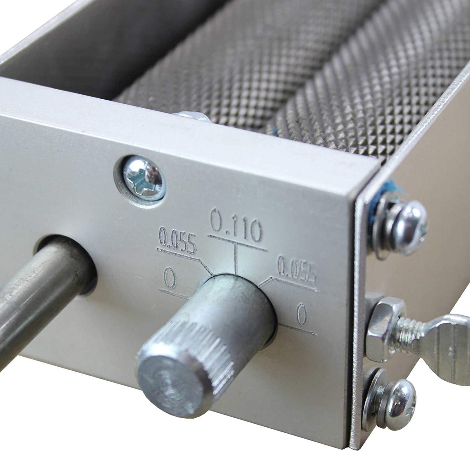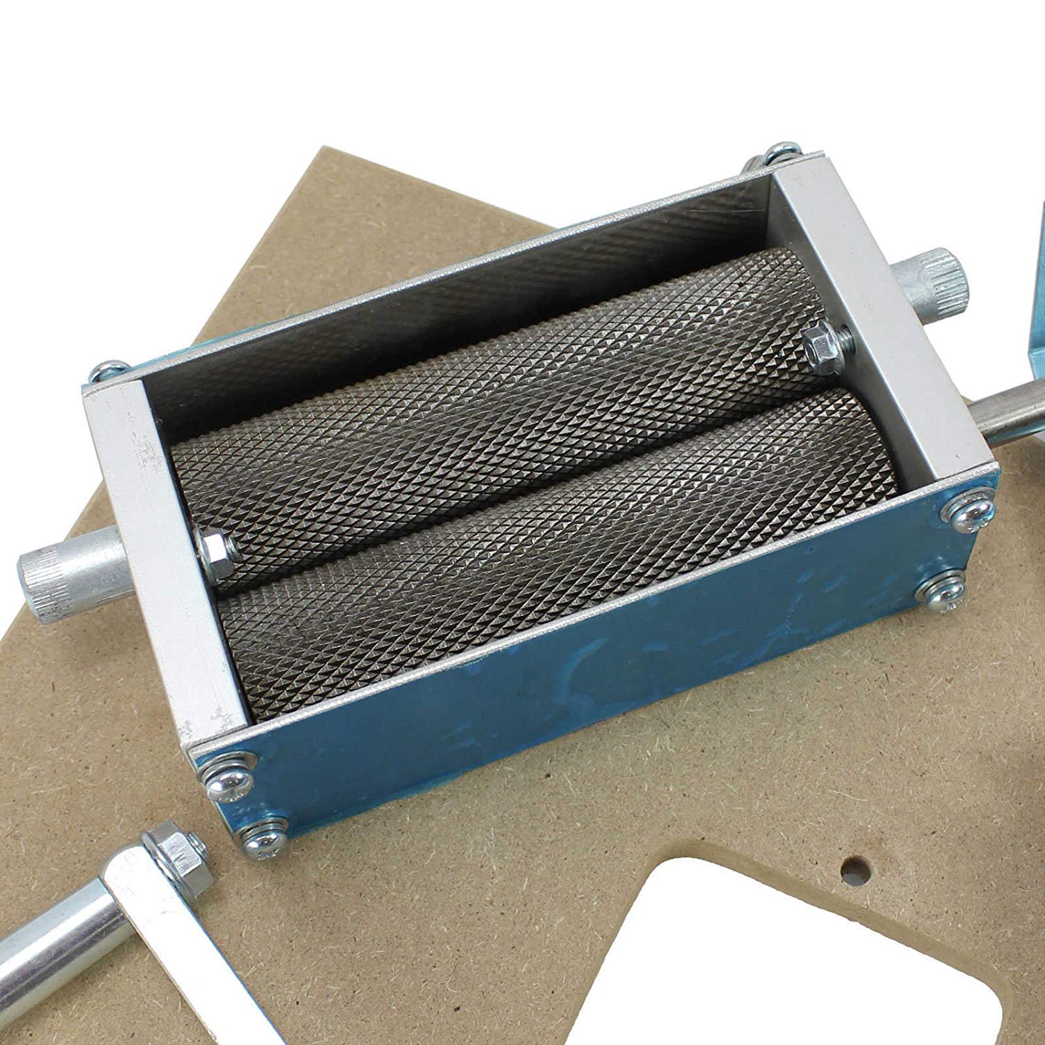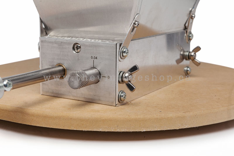 12 TPI knurl to efficiently pull grain through rollers while leaving hull intact to form an excellent filter bed for spargingThe hopper holds 10lb at one time.